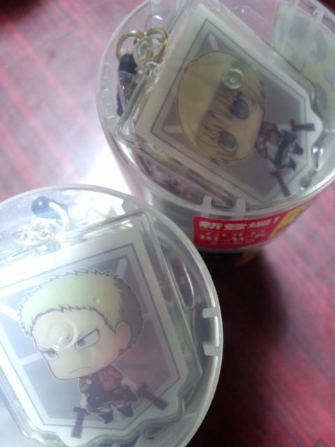 ライナーとアルミン。ミカサと女神見つけきらんかった。てかレジの人に地味に公開処刑された。改めて言われると恥ずかしいジャン…!